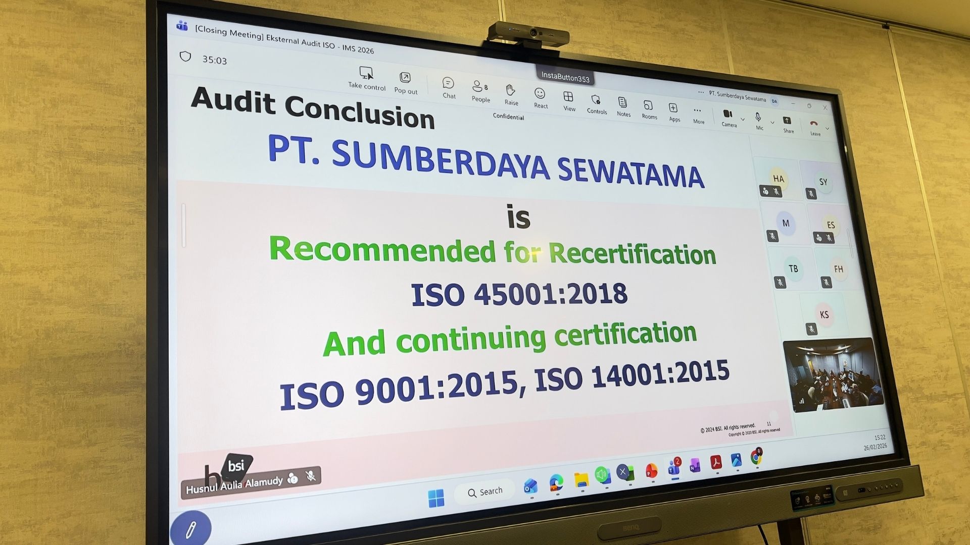 Sebagai bukti nyata dari penerapan praktik terbaik internasional, PT Sumberdaya Sewatama berhasil mempertahankan sertifikasi ISO Integrated Management System pada tahun 2026. Melalui audit eksternal yang dilaksanakan pada 18–26 Februari 2026, perusahaan juga berhasil meraih extension to scope untuk area operasional Depo Pulogadung dan Depo Gresik.